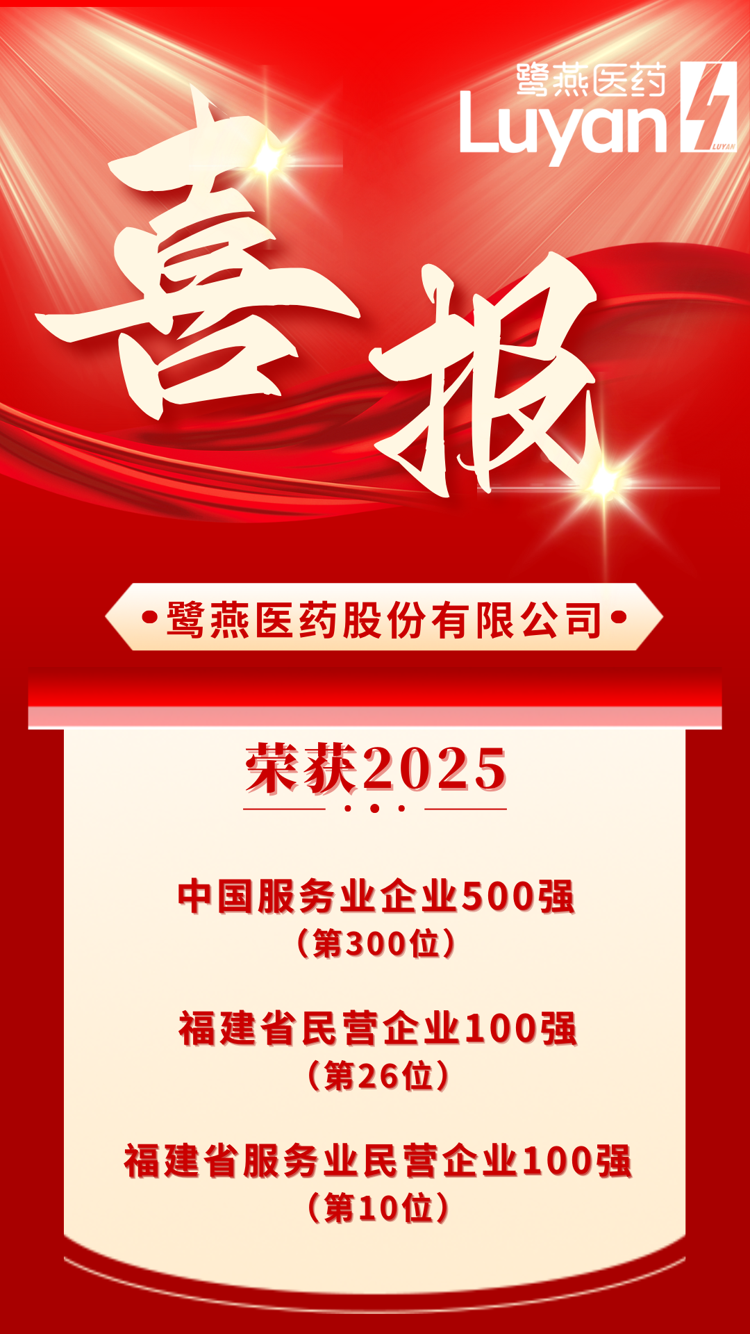 9月18日,中國企業(yè)聯(lián)合會、中國企業(yè)家協(xié)會在2025現(xiàn)代服務(wù)業(yè)高質(zhì)量發(fā)展大會上,發(fā)布了“2025中國服務(wù)業(yè)企業(yè)500強(qiáng)”,鷺燕醫(yī)藥憑借穩(wěn)健的發(fā)展態(tài)勢與卓越的服務(wù)能力入圍,位列第300位,連續(xù)12年蟬聯(lián)該榜單。
