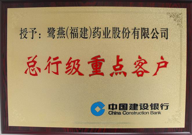 基于鷺燕企業(yè)優(yōu)異的業(yè)績表現(xiàn)、穩(wěn)健的經(jīng)營管理風格和良好的資信情況,經(jīng)過中國建設(shè)銀行的嚴格審評,近日,鷺燕(福建)藥業(yè)股份有限公司被認定為中國建設(shè)銀行“總行級重點客戶”。
