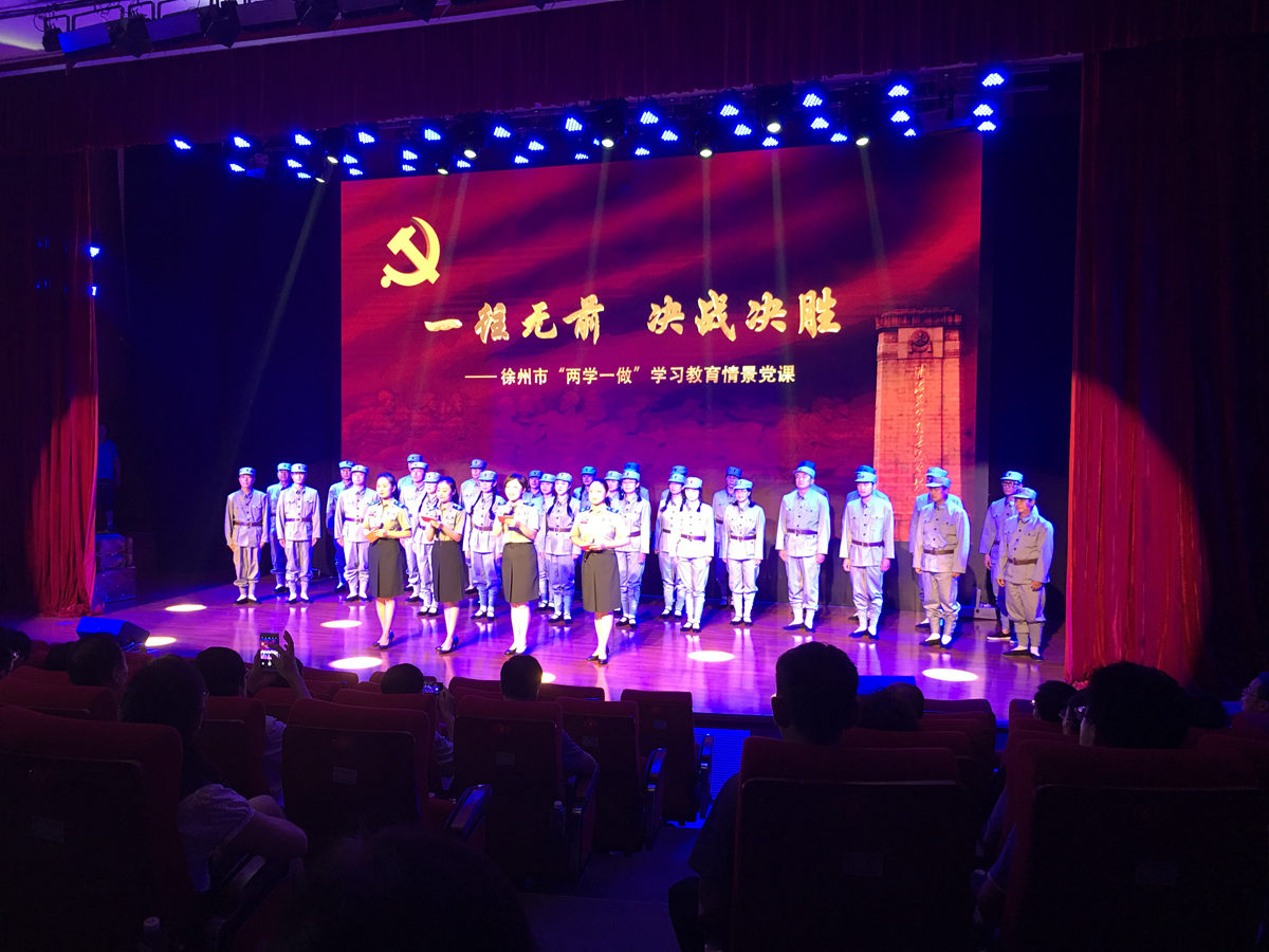 “一往無前、決戰(zhàn)決勝”情景黨課改變傳統(tǒng)黨課的固有模式,以宣傳“淮海戰(zhàn)役精神”為主題,通過樂、舞、頌、劇等多種藝術(shù)形式,綜合運用聲、光、電等現(xiàn)代技術(shù)手段,講述了陳潔、李鳳蘭、孔金勝以及幸存將士、擁軍百姓等人的故事,生動再現(xiàn)淮海戰(zhàn)役的偉大場景和共產(chǎn)黨員的英勇事跡。一首首激昂的歌曲,一個個細膩動人的故事,潛移默化地將黨員帶入特定情景中,使黨員們深刻感受到戰(zhàn)役的殘酷與艱辛,使大家在思想上產(chǎn)生了共鳴。黨課進行時,黨員們的掌聲一次次響起,淚光一次次閃爍,大家都被這種新穎的黨課形式深深吸引。