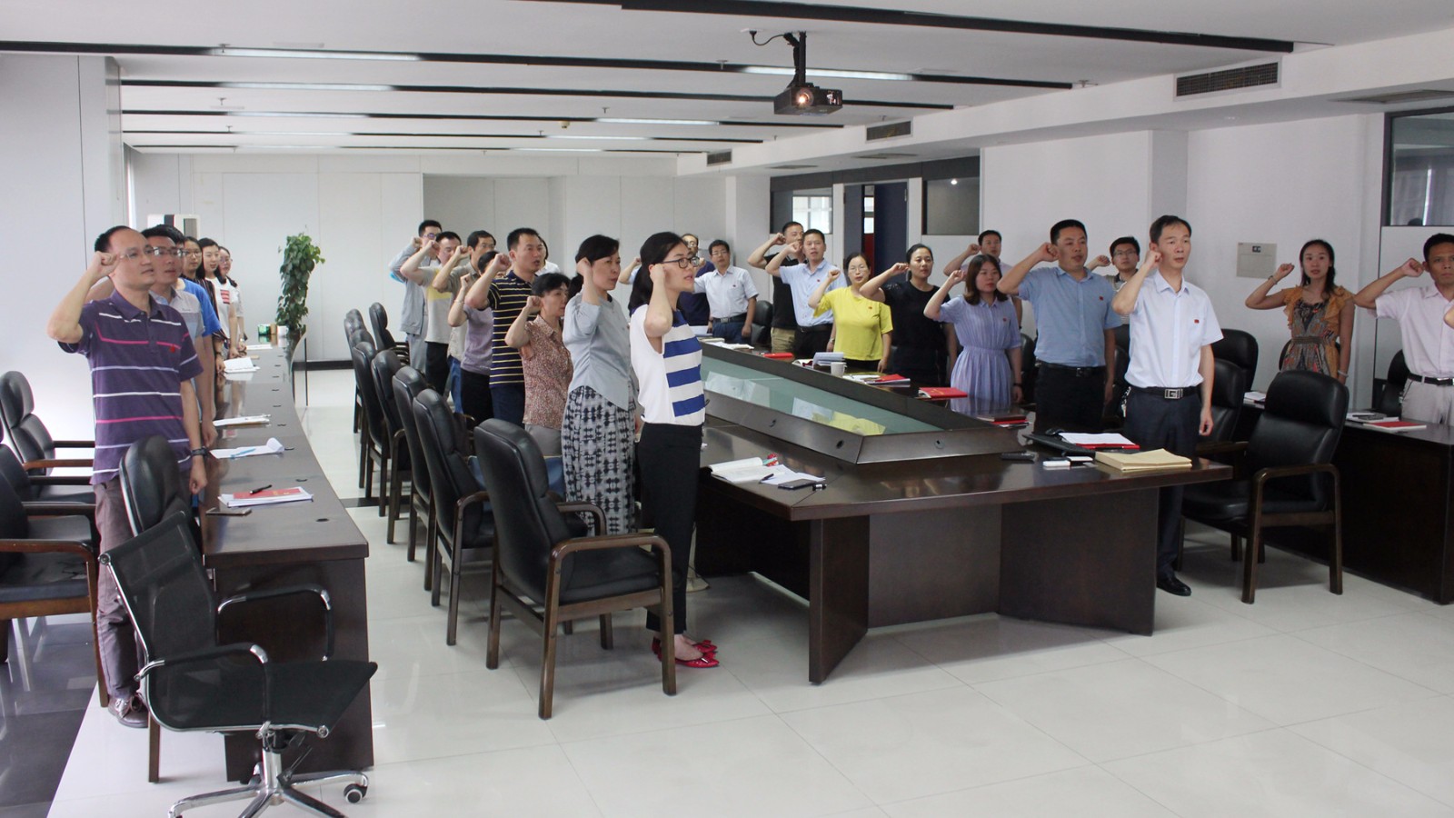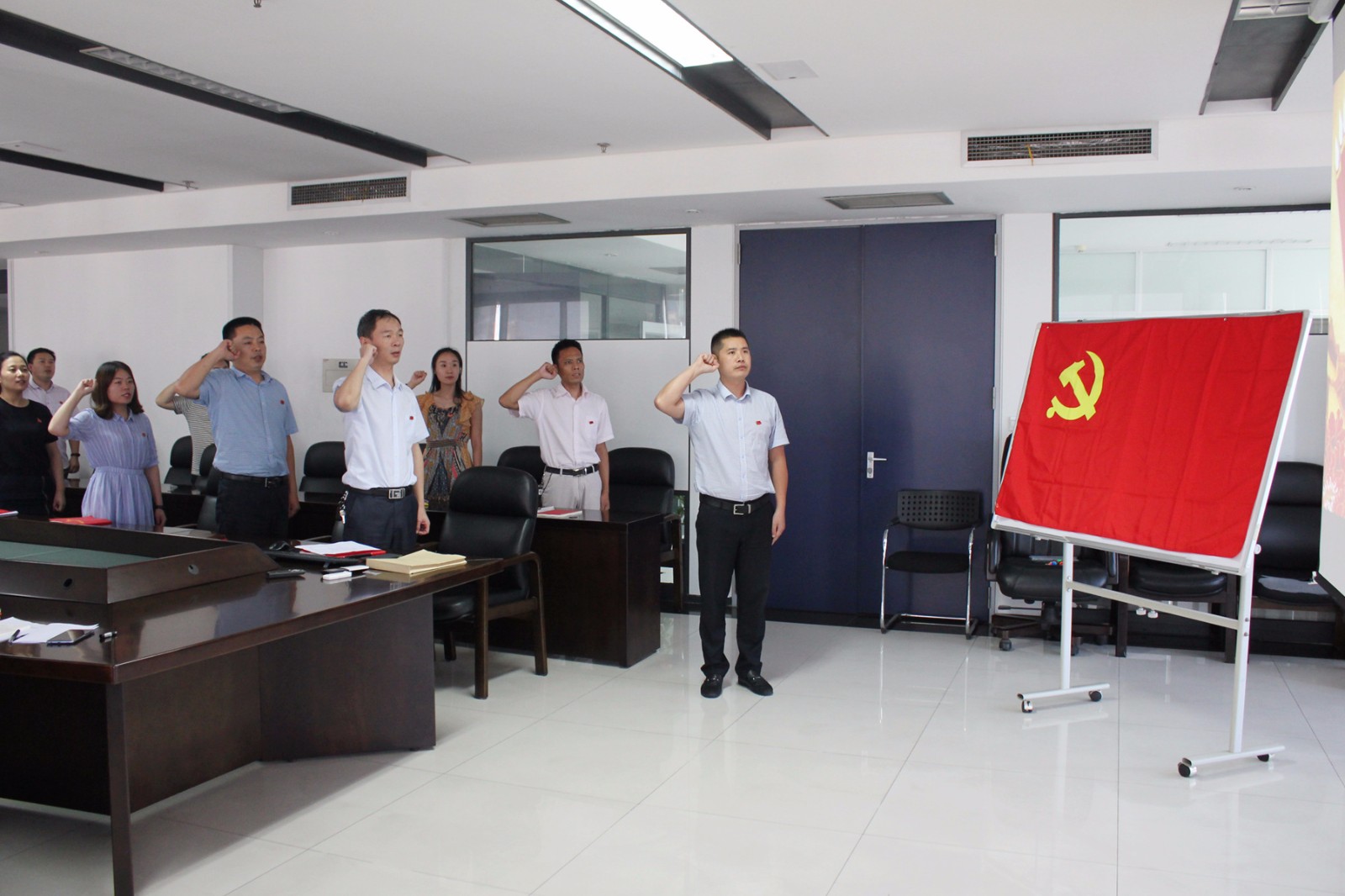 根據本次黨員日活動主題,黨員們逐一發(fā)言,回顧了各自的入黨歷程,結合實際交流了入黨以來在思想上、工作中的成長與改變,并對照入黨誓詞進行黨性分析,同時,對今后的工作做出政治承諾。最后,全體黨員起立在黨旗下重溫入黨誓詞,牢記入黨初心。