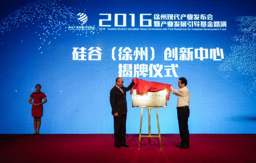 7月12日,與會(huì)嘉賓在大會(huì)現(xiàn)場(chǎng)為硅谷(徐州)創(chuàng)新中心揭牌。當(dāng)日,2016徐州現(xiàn)代產(chǎn)業(yè)發(fā)布會(huì)暨產(chǎn)業(yè)發(fā)展引導(dǎo)基金路演在江蘇徐州正式開(kāi)幕。大會(huì)吸引青云創(chuàng)投、北極光創(chuàng)投、紀(jì)源資本等幾十家國(guó)內(nèi)知名投資機(jī)構(gòu)的創(chuàng)始人、合伙人以及百余名投資界精英齊聚一堂,共同為徐州的產(chǎn)業(yè)轉(zhuǎn)型升級(jí)獻(xiàn)計(jì)獻(xiàn)策。新華社記者李響攝