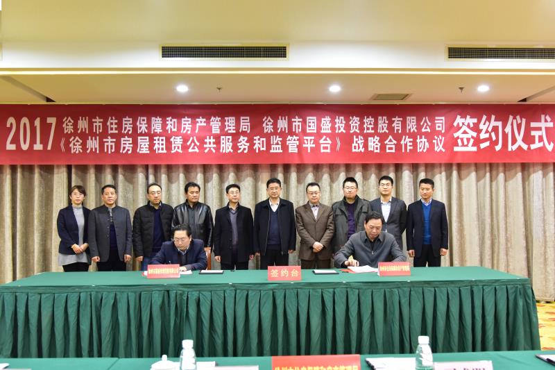 11月24日下午,徐州市住房保障和房產(chǎn)管理局與徐州市國盛投資控股有限公司在云泉山莊簽署《徐州市房屋租賃公共服務和監(jiān)管平臺》戰(zhàn)略合作協(xié)議。徐州市房管局局長閆軍、副局長司成明,國盛公司總經(jīng)理李中亞等領導出席會議并講話。