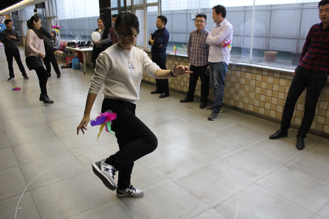 本次活動(dòng)突出了運(yùn)動(dòng)性與趣味性,主要包括踢毽子、齊心協(xié)力運(yùn)氣球、夾黃豆、蘿卜蹲、搶凳子等項(xiàng)目。活動(dòng)中,選手們精神飽滿、勇于拼搏、奮力爭(zhēng)先,圍觀的員工更是熱情滿滿,為選手們鼓勁加油,展現(xiàn)了國盛公司員工積極向上、健康快樂的精神風(fēng)貌。
