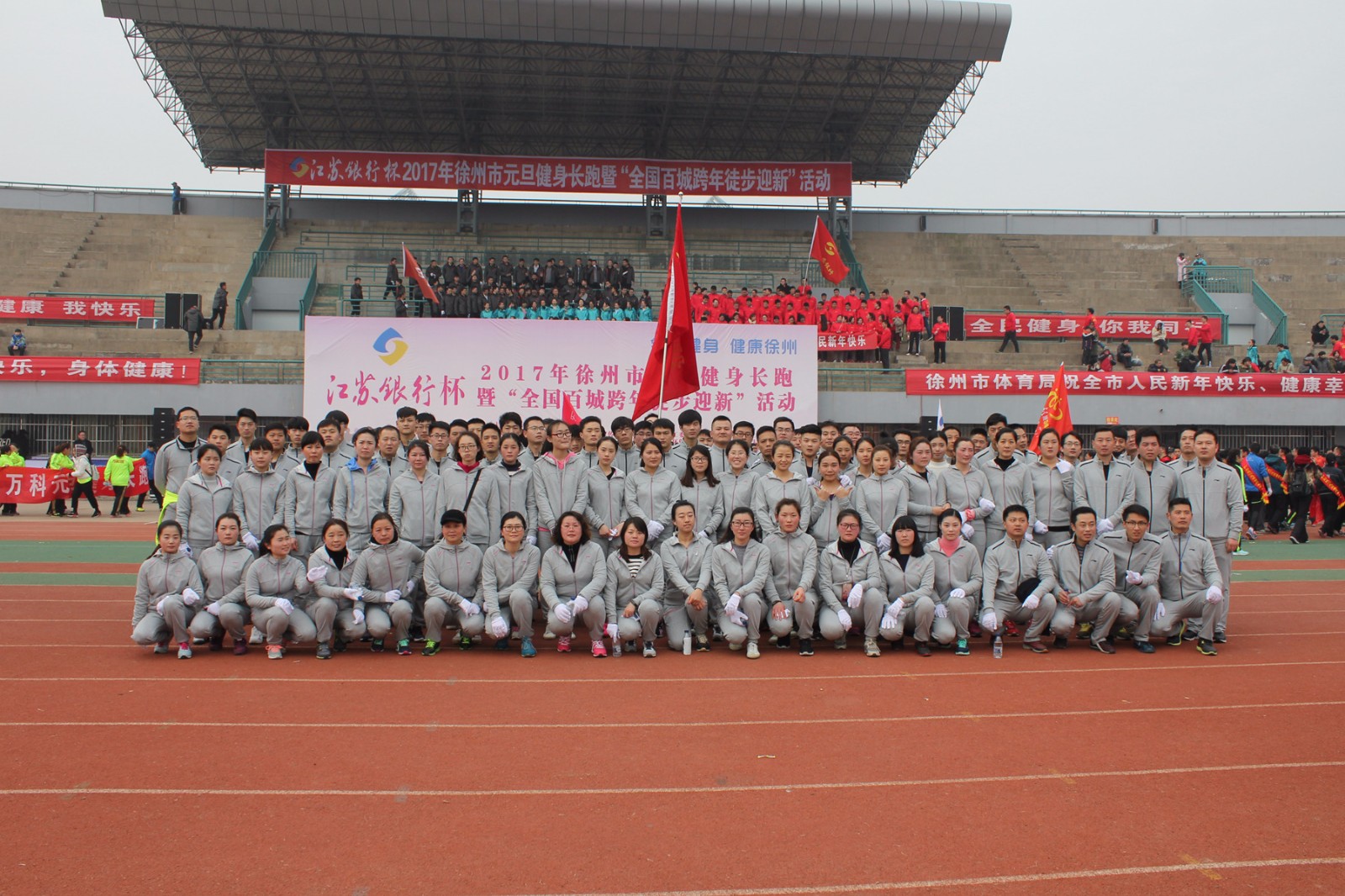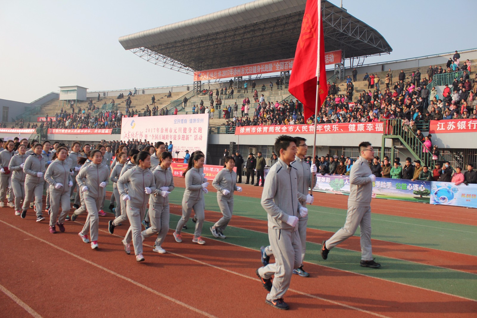 1月1日上午9點(diǎn),2017年徐州市元旦健身長(zhǎng)跑暨“全國(guó)百城跨年徒步迎新”活動(dòng)在徐州市體育中心田徑場(chǎng)拉開(kāi)帷幕。為積極響應(yīng)徐州市委、市政府的號(hào)召,國(guó)盛公司組織了100人的方隊(duì)參加此次元旦長(zhǎng)跑活動(dòng)。